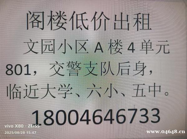 文园小区A楼4单元801,交警支队后身,临近大学,六小,五中。电话18004646733 联系我时,请说是在【七台河信息网】04648.cn信息网 免费发布查询各类广告信息!看到的,谢谢!